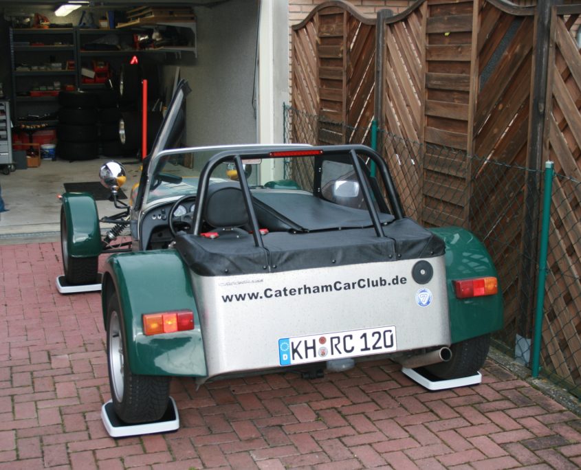 Dann den Caterham mit dem Wagenheber draufgestellt: